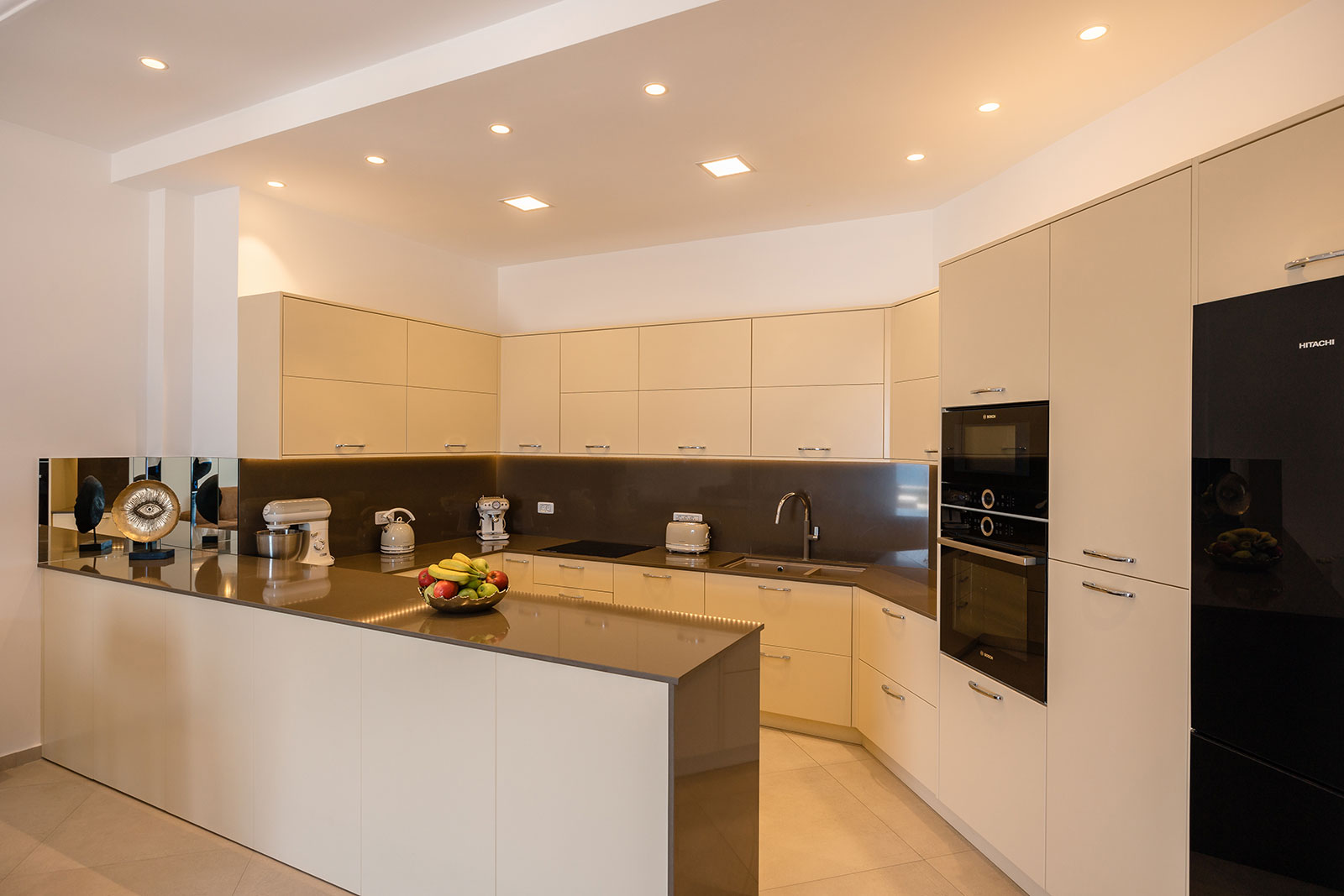 The kitchen at Santorini Grand Luxury Villas is a culinary haven for those who appreciate the art of cooking. Equipped with top-of-the-line appliances and spacious countertops, it offers a perfect setting for preparing gourmet meals. Whether you're a seasoned chef or an aspiring cook, the kitchen is well-stocked with high-quality cookware and utensils to fulfill your culinary desires. Enjoy your creations in the dining area, or take advantage of the villa's spacious terrace for an unforgettable dining experience