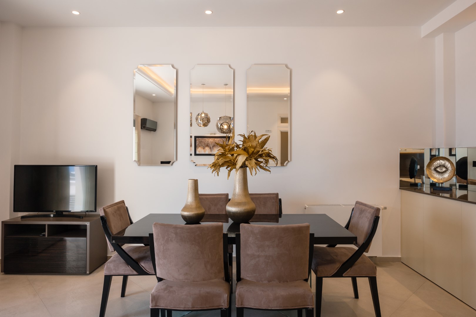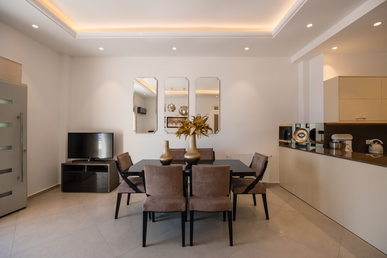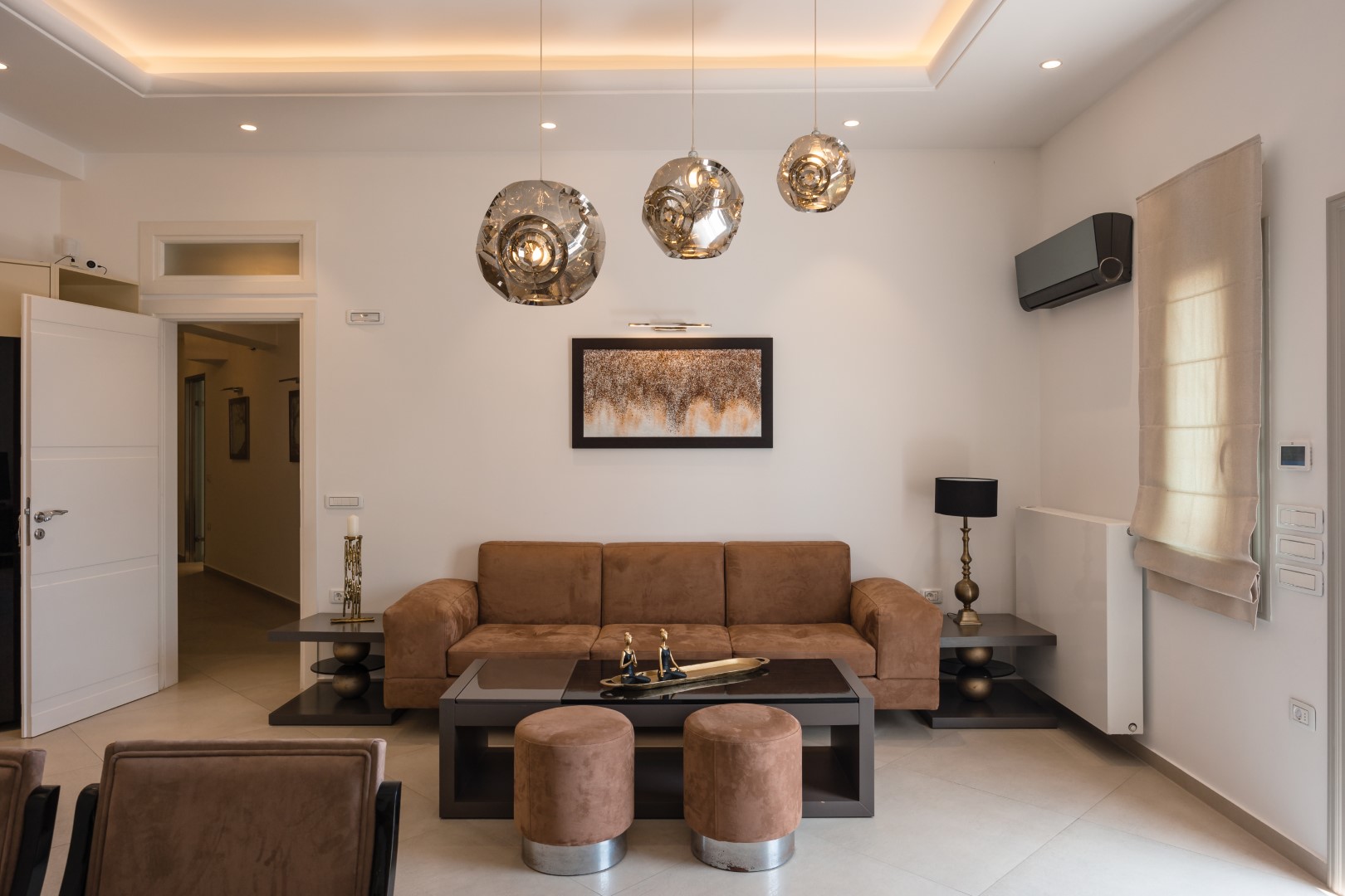 The living room at Santorini Grand Luxury Villas is a haven of comfort and elegance. Designed with a sophisticated touch, it features plush furnishings, stylish decor, and floor-to-ceiling windows that frame breathtaking views of the Aegean Sea. Sink into the sumptuous sofas or unwind with a movie on the entertainment system. The living room is a perfect space for relaxation, socializing, and creating lasting memories with loved ones