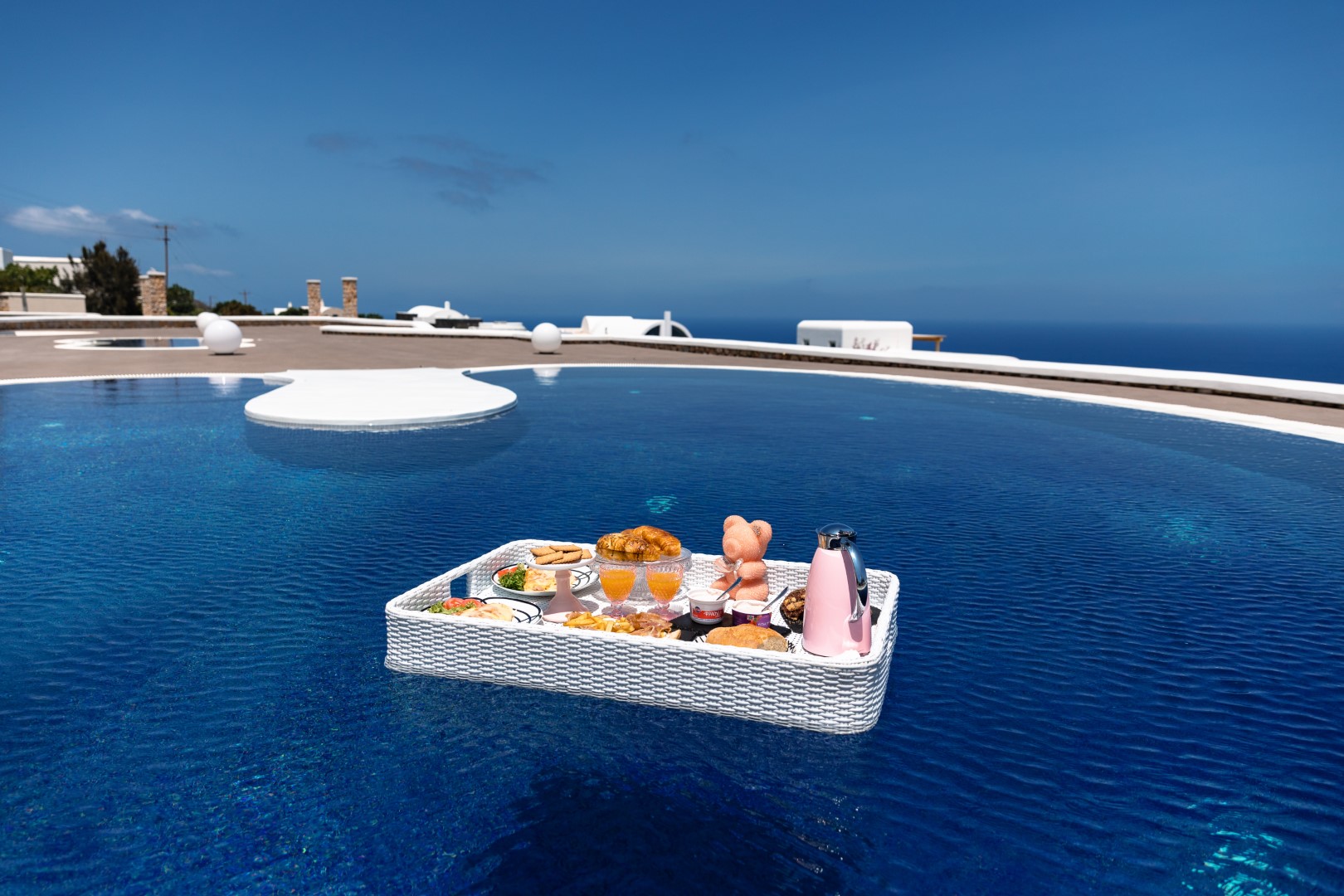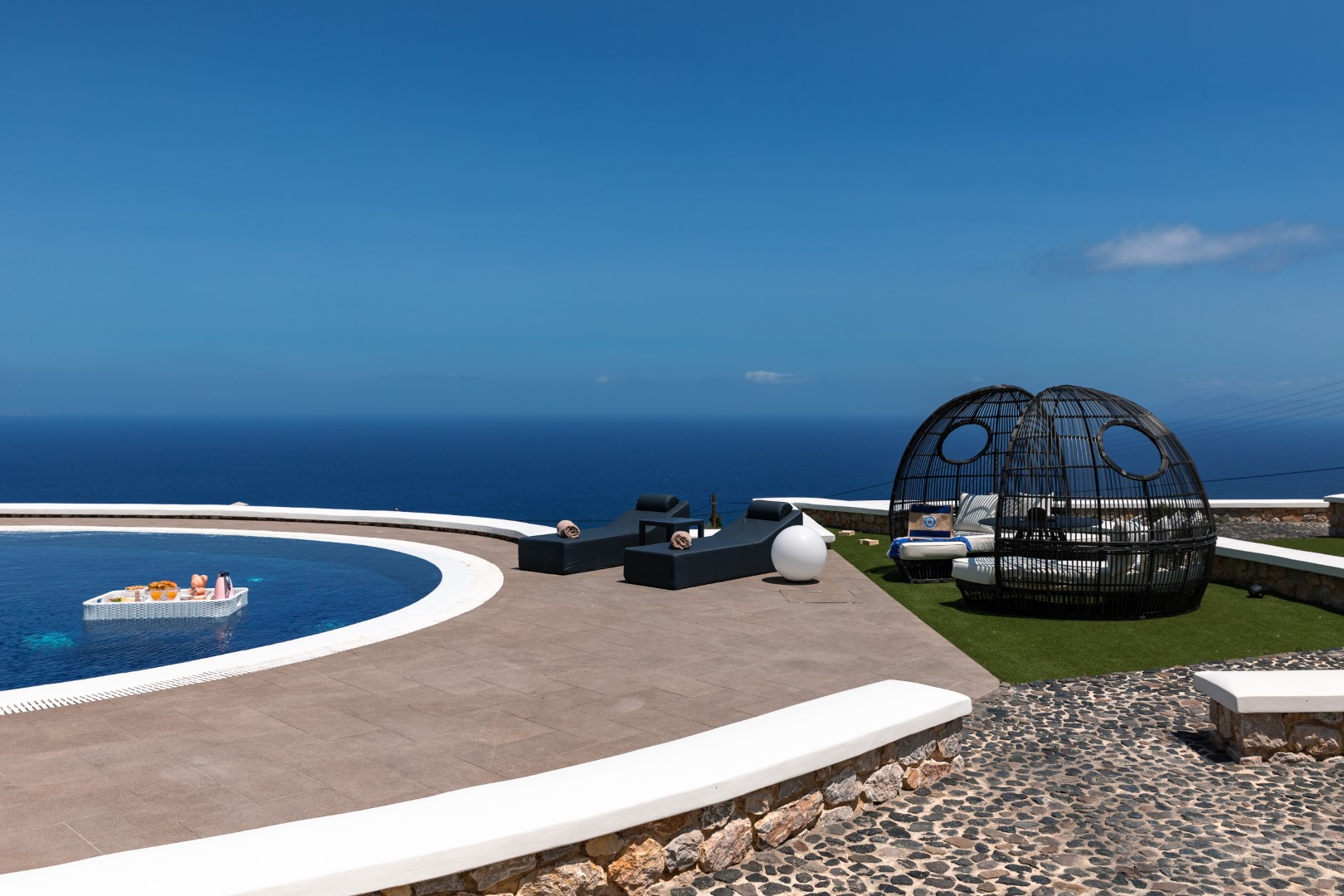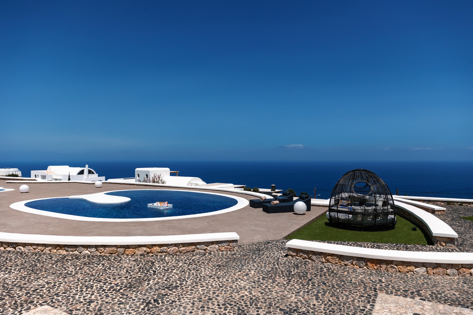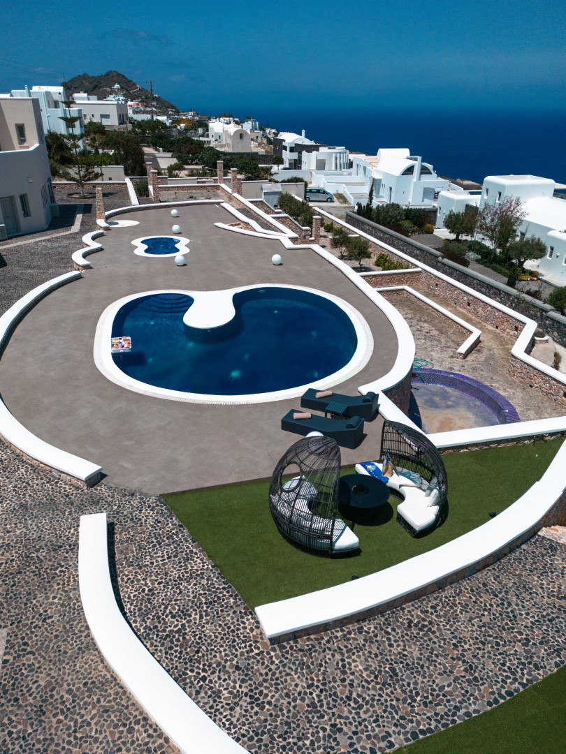 The pool area at Santorini Grand Luxury Villas is a true sanctuary of luxury and tranquility. Take a refreshing dip in the private infinity pool, surrounded by stunning views of the Aegean Sea and the island's majestic cliffs. Lounge on the comfortable sunbeds and bask in the Mediterranean sunshine, or seek shade under the parasols while sipping on a refreshing cocktail. As the day fades into evening, witness magical relaxation by the pool, creating a moment of sheer beauty and serenity